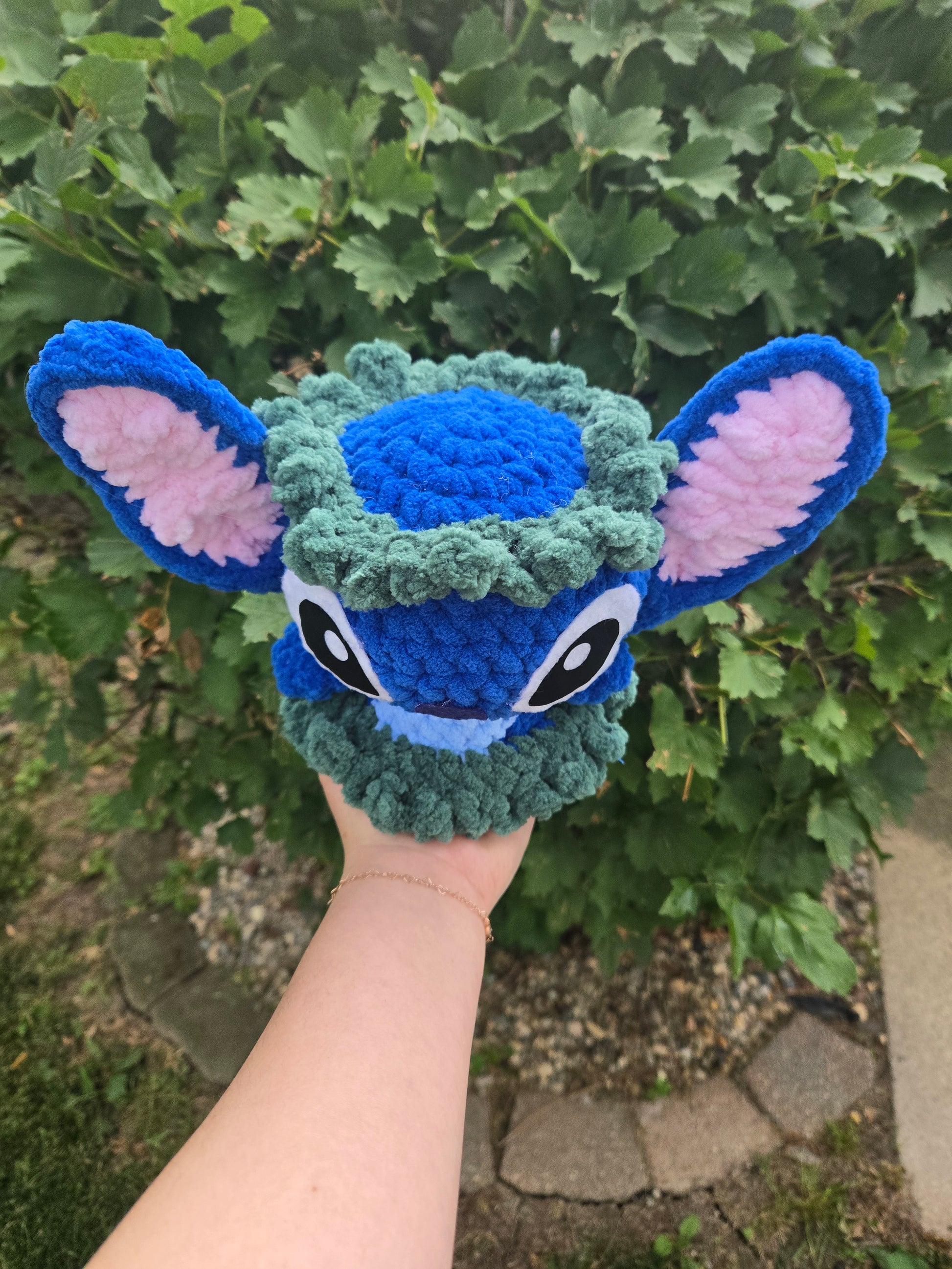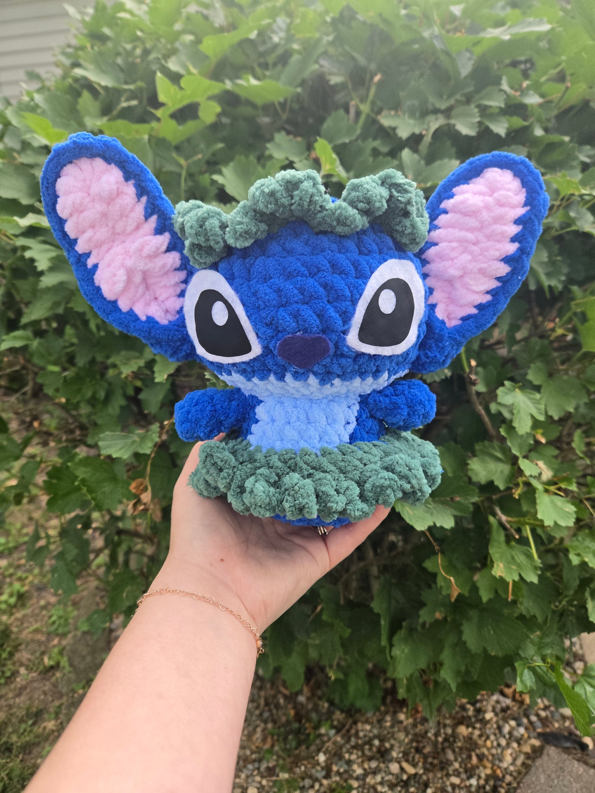 This blue alien is made with super soft plush yarn, polyfil, and handmade felt eyes.